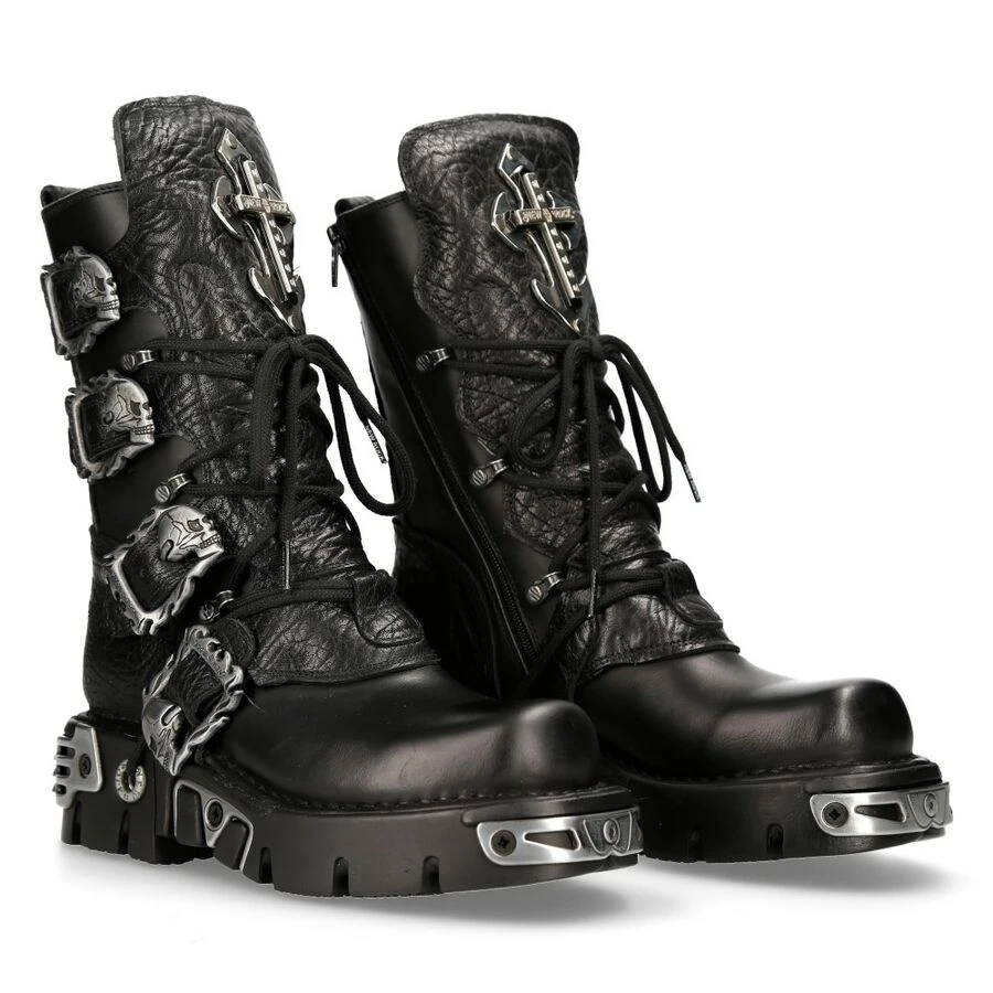 Les boucles en forme de skull apportent une touche très dark, quant à la grande croix gothique en métal elle est là pour rapeller à ceux qui avaient un doute qu’il s’agit bien de bottes 100% goth