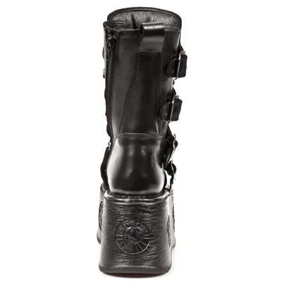 Splendide paire de bottes à semelles compensées impressionnantes, 4 sangles de réglage, laçage frontal, fermeture éclair intérieure