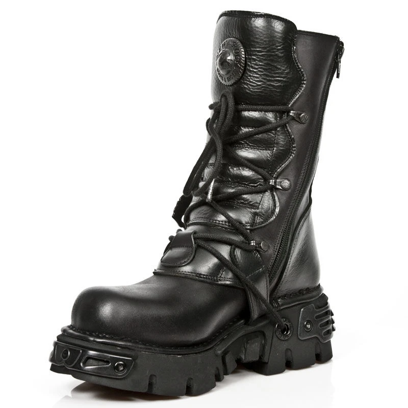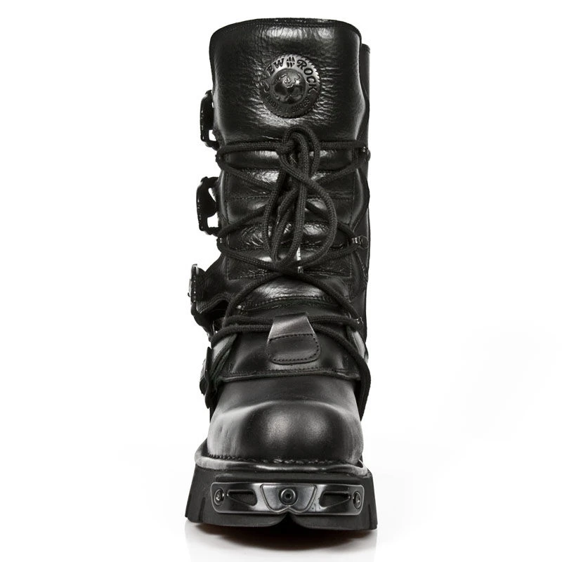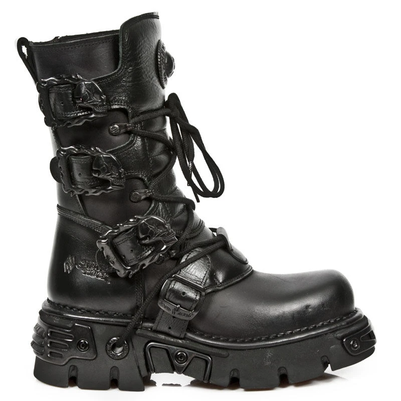 Dans la pure lignée des best-sellers de chez New Rock, ces bottes en cuir noir sont décorées de boucles en forme de skull pour un look dévastateur