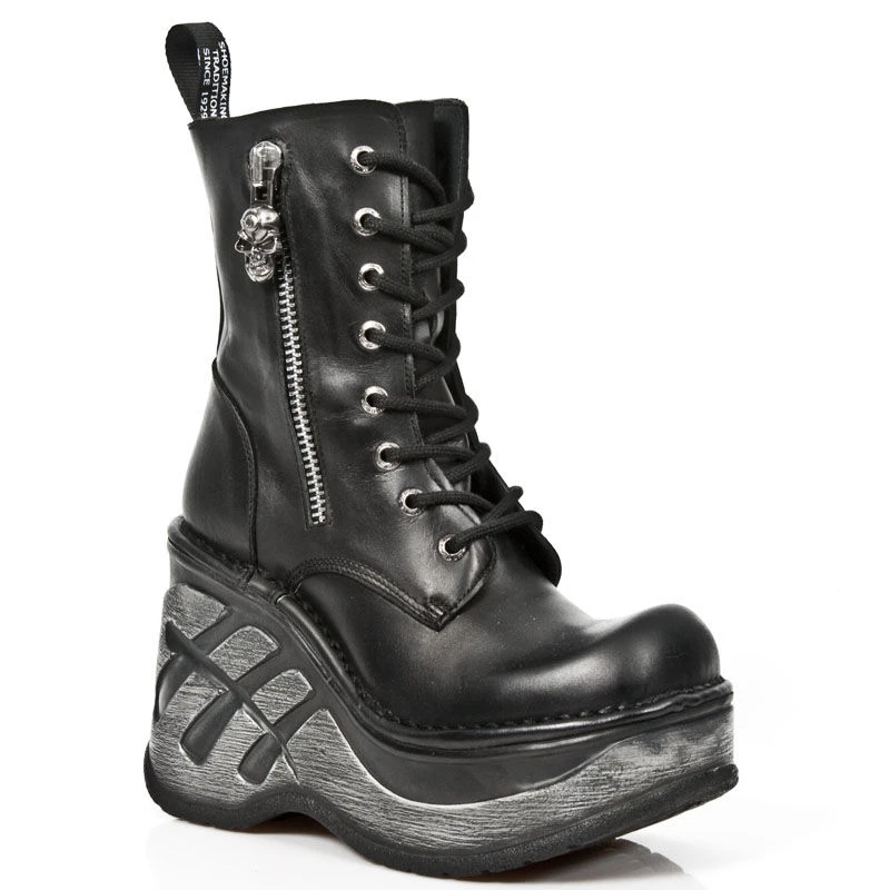 Ces bottines sont dans la pure ligée gothique avec leurs semelles compensées de plus de 5 cm et de 12 cm au talon
