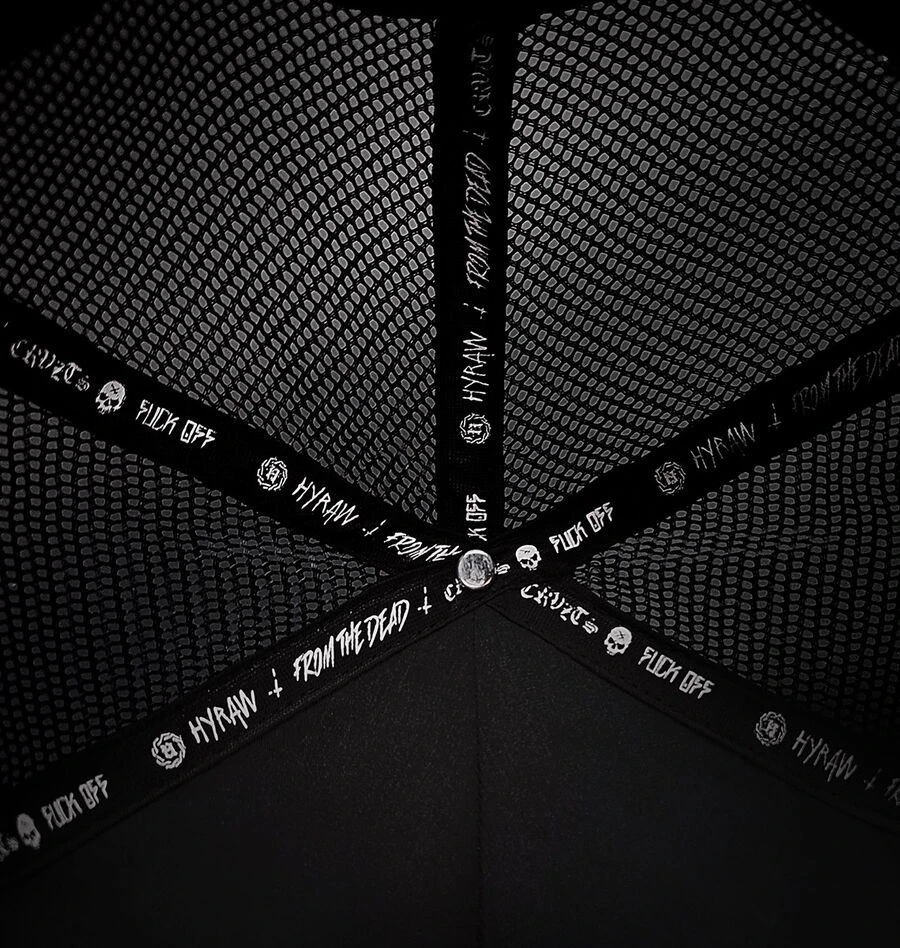 Très belle casquette noire et rouge de type rock métal gothique signée Hyraw