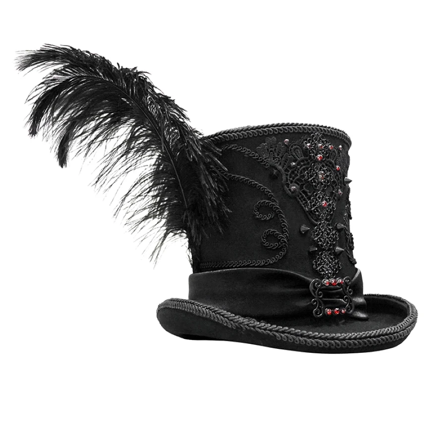 De grandes broderies accentuent le style gothique de ce haut de forme