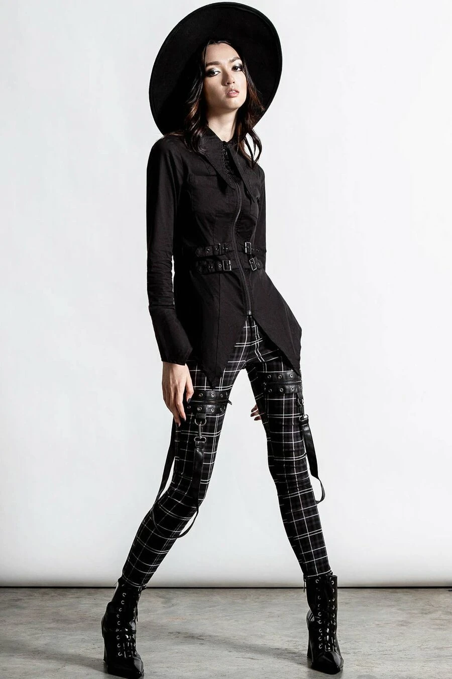 Superbe chemise noire taillée dans un tissu souple et élastique de grande qualité par Killstar