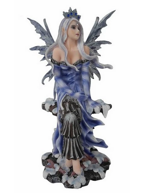 Très belle fée bleue assise sous la neige semblant attendre son prince charmant