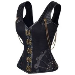 Habillée d’une superbe robe/corset dans le pur esprit gothique