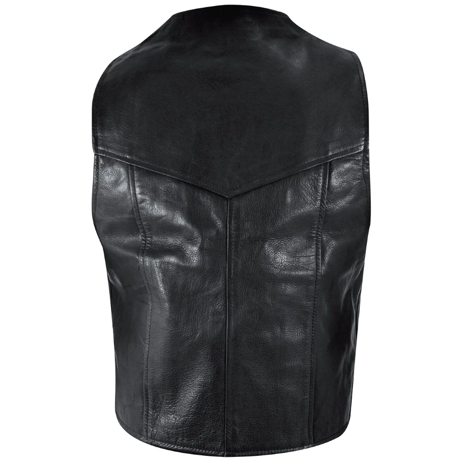 Ce gilet sans manches est fabriqué dans un cuir de vachette de haute qualité