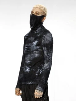 Ce haut manches longues signé Punk Rave est fabriqué en tissu mesh (résille) à mailles très extensibles