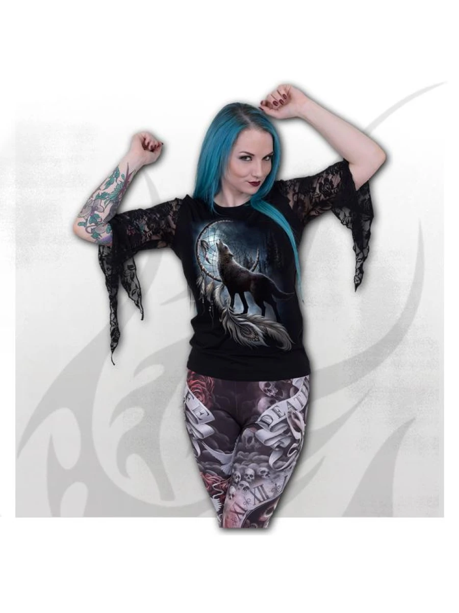 Manches entièrement en fine dentelle florale avec terminaison en poine