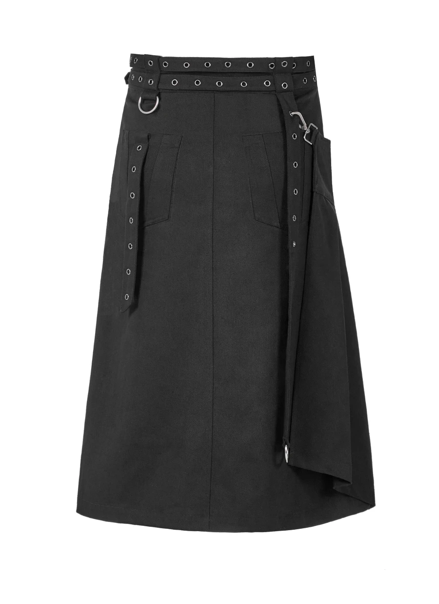 Elle possède un grand panneau latéral plissé et asymétrique détachable avec une poche à pression