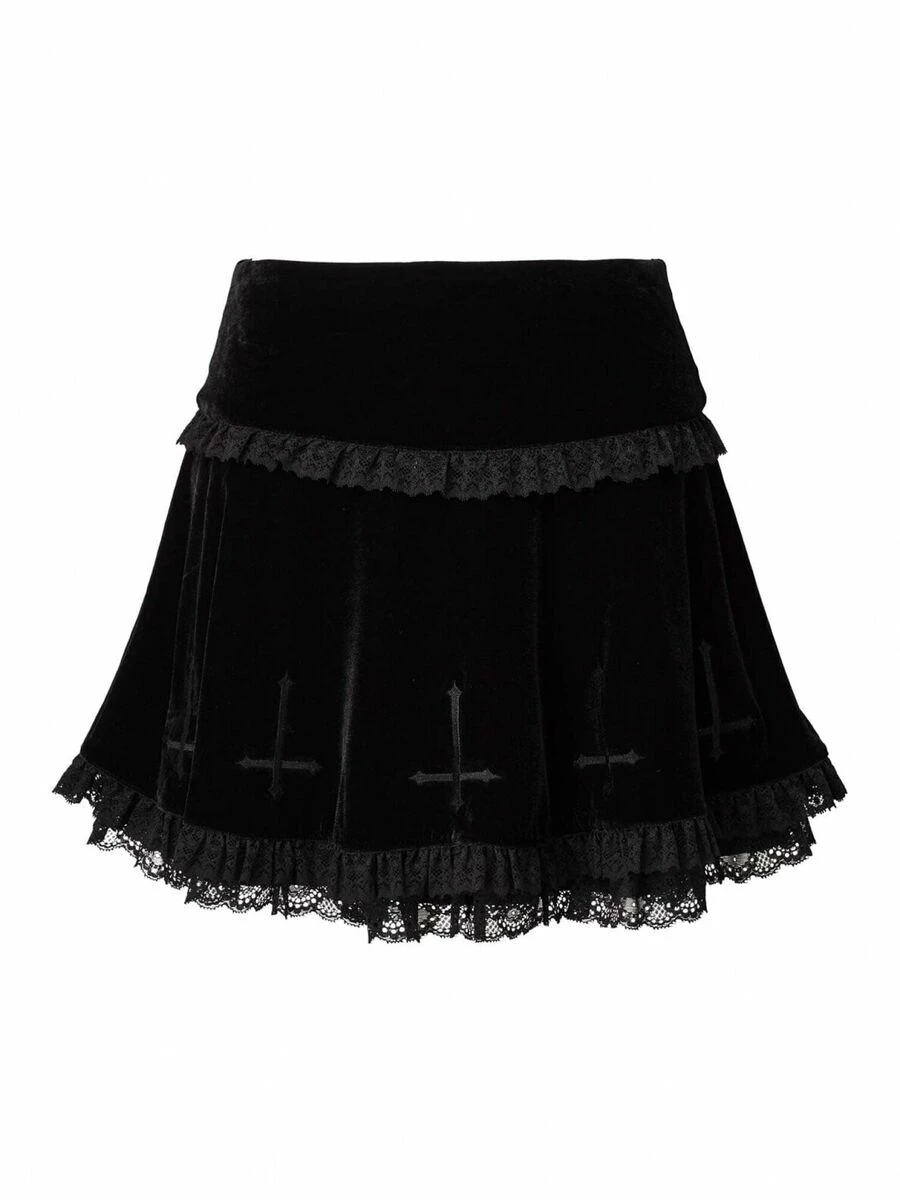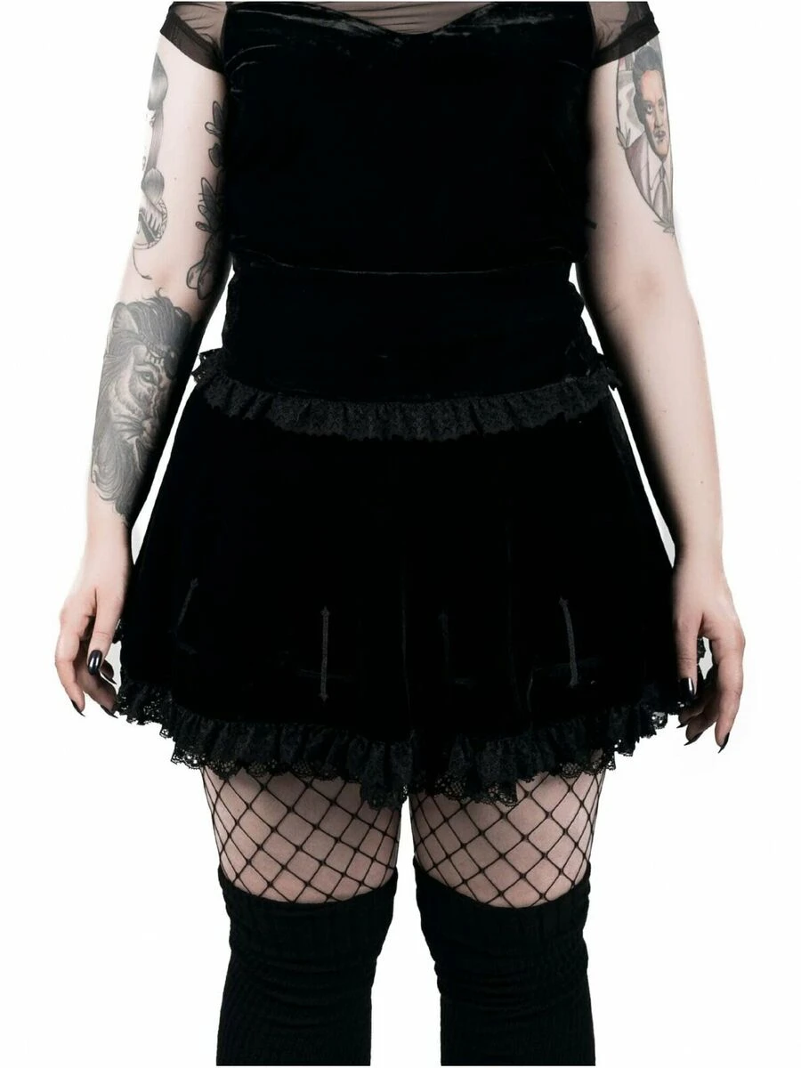 Cette jupe est composée d’un premier jupon de satin noir recouvert par un jupon de tulle bordé de dentelle, lme tout recouvert par un velours de grande qualité