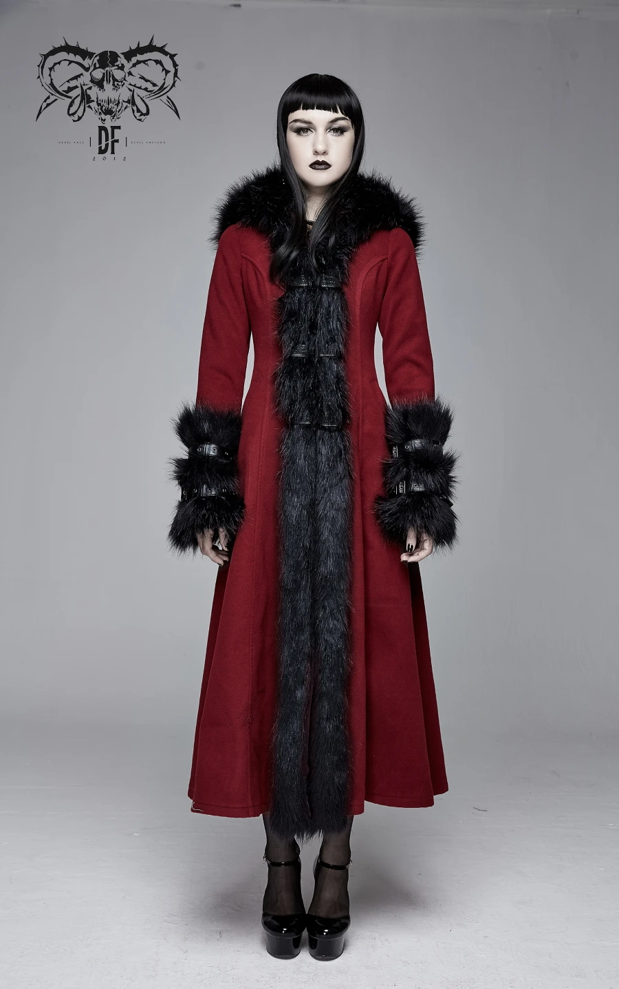 Il est décoré de superbes fourrures synthétique noires en bout de manches, sur la capuche ainsi que tout le long du revers avant
