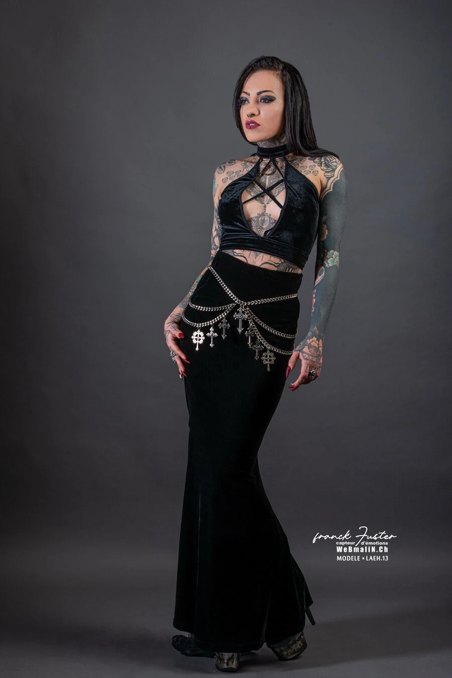 Elle est fabriquée dans un luxueux velours noir corbeau doux au toucher et qui s’étire à la perfection pour une coupe vraiment séduisante