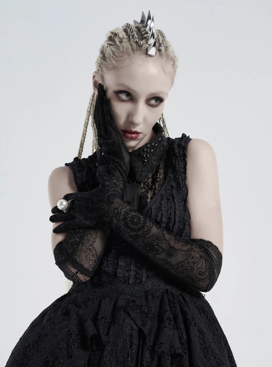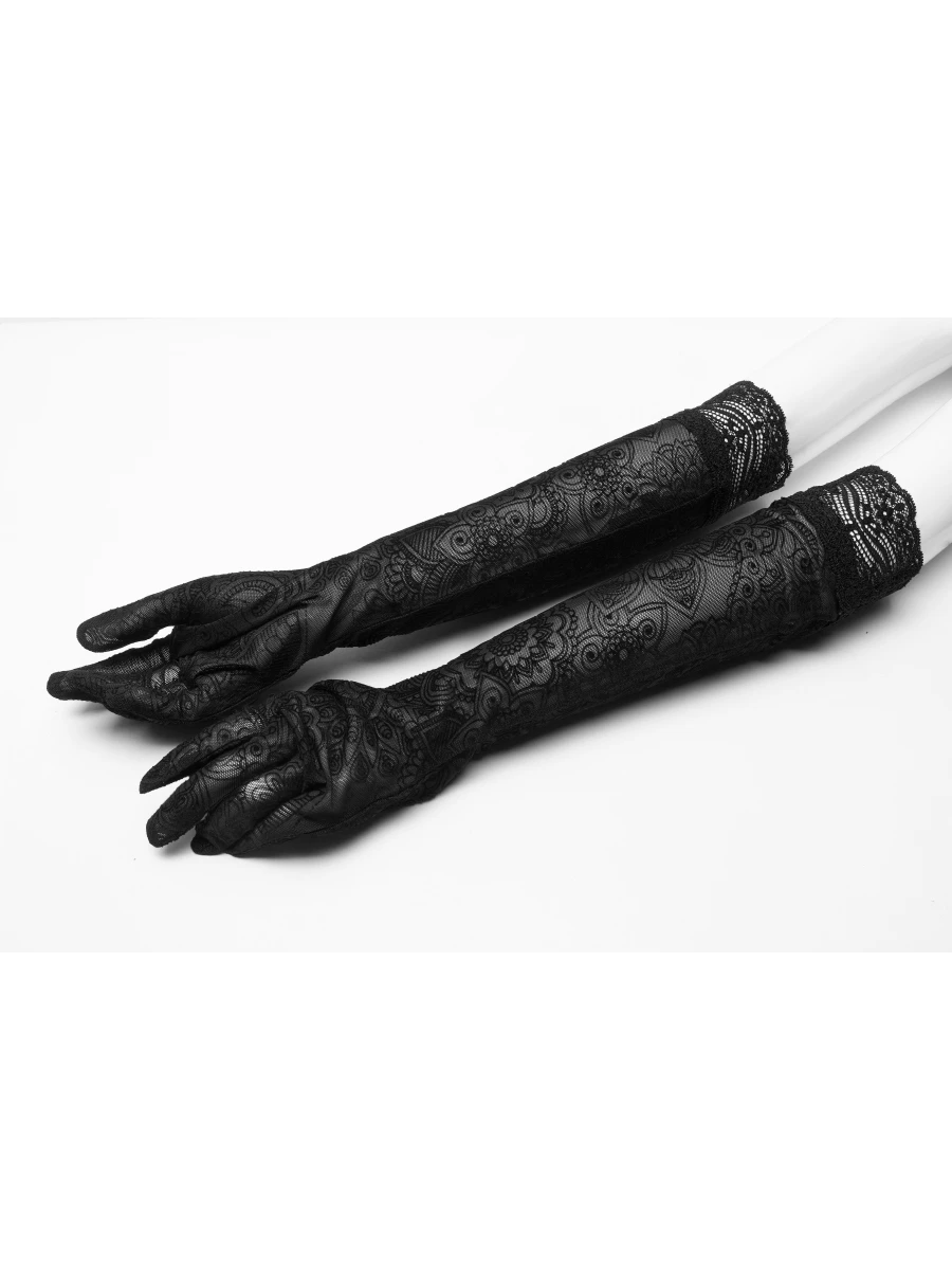 Longues mitaines gothiques en tissu résille décoré de motifs floraux