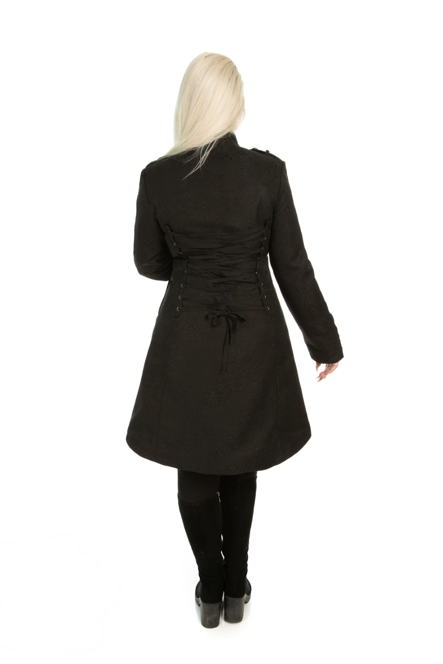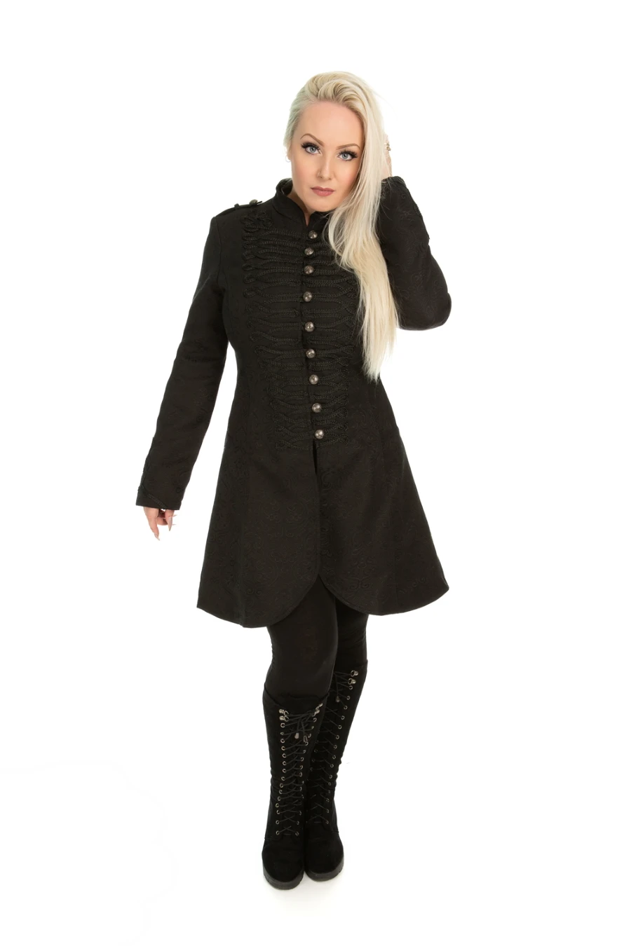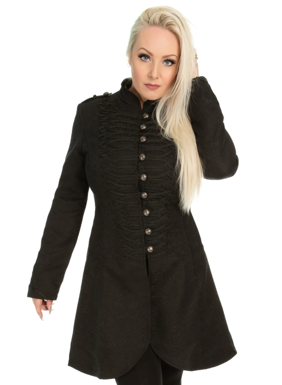 Il est orné de nombreux brandebourgs dans un pur esprit goth/militaire