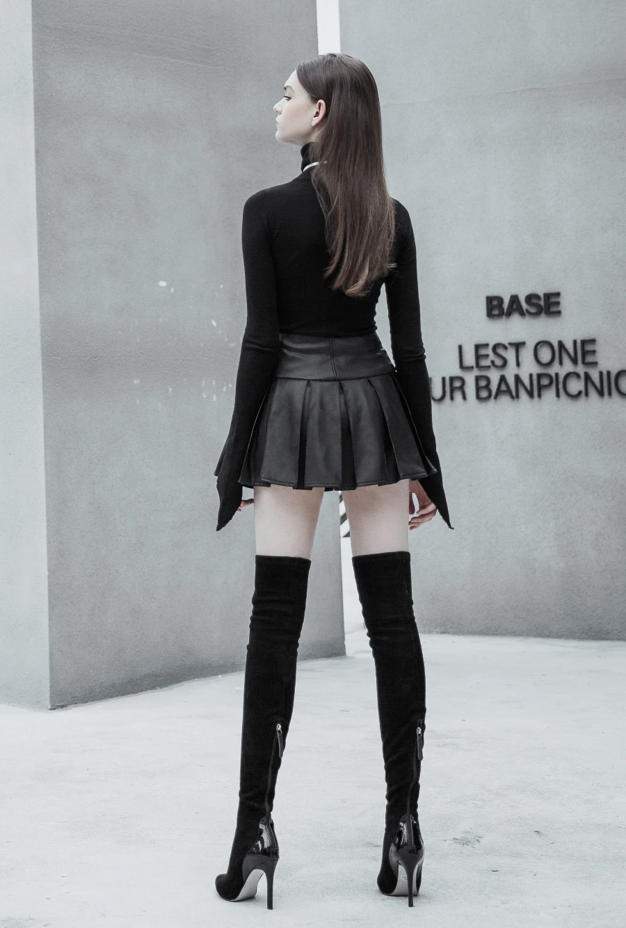 Belle jupe plissée en simili cuir noir de grande qualité signée Punk Rave
