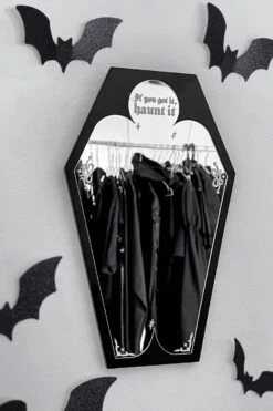 Ce miroir en forme de cercueil s’accroche au mur comme un tableau grâce à son crochet