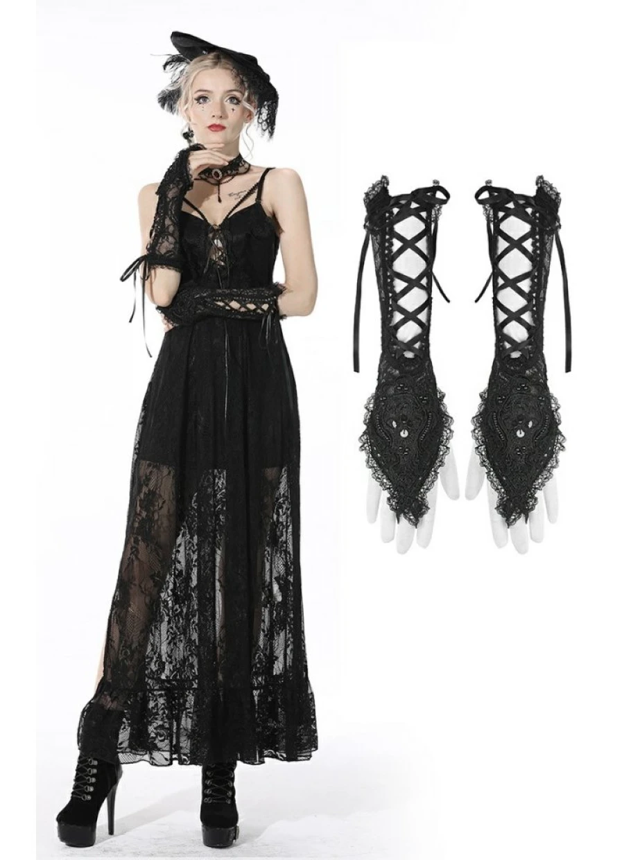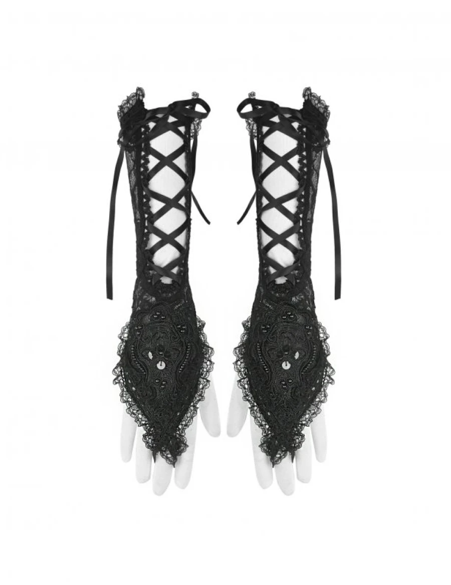 Elles sont agrémentées d’un laçage par ruban de satin dans le plus pur style goth permettant également un bon ajustement des mitaines