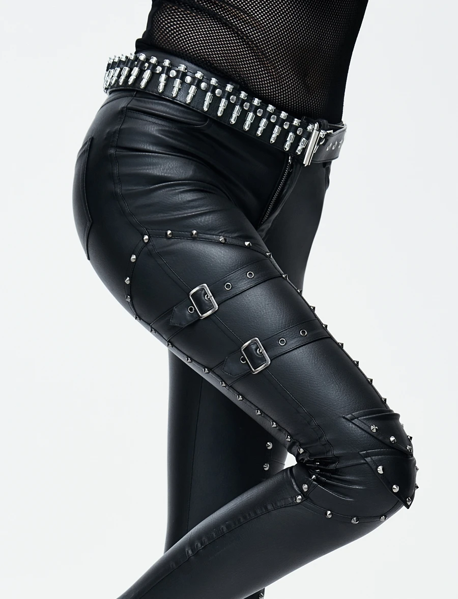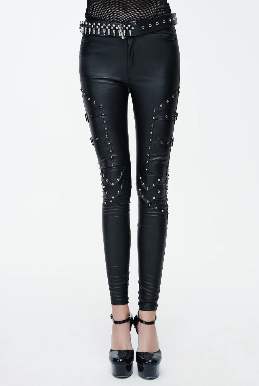 Superbe pantalon coupe slim en simili cuir noir de qualité