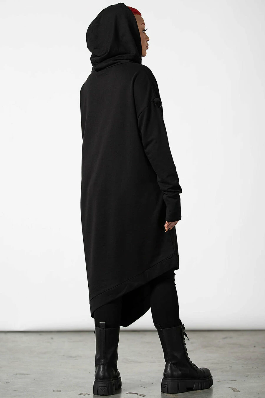 Le cordon de la capuche est en chaîne métallique noire avec deux gros anneaux