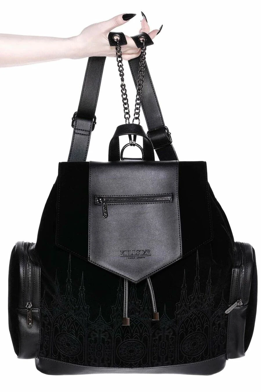 Grand sac à dos en simili cuir et velours soft par Killstar