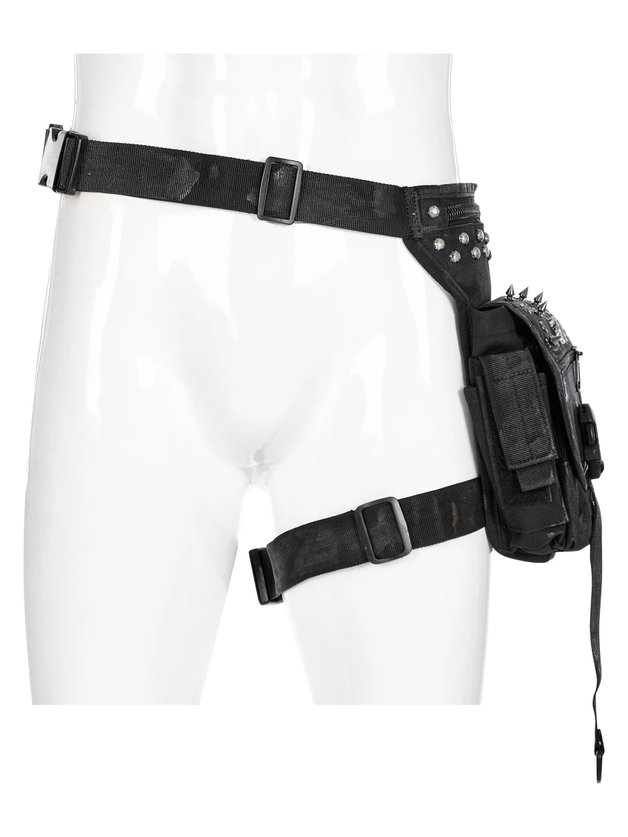 La sacoche se fixe à la taille et à la cuisse à l’aide de sangles réglables avec attache rapide type cyber