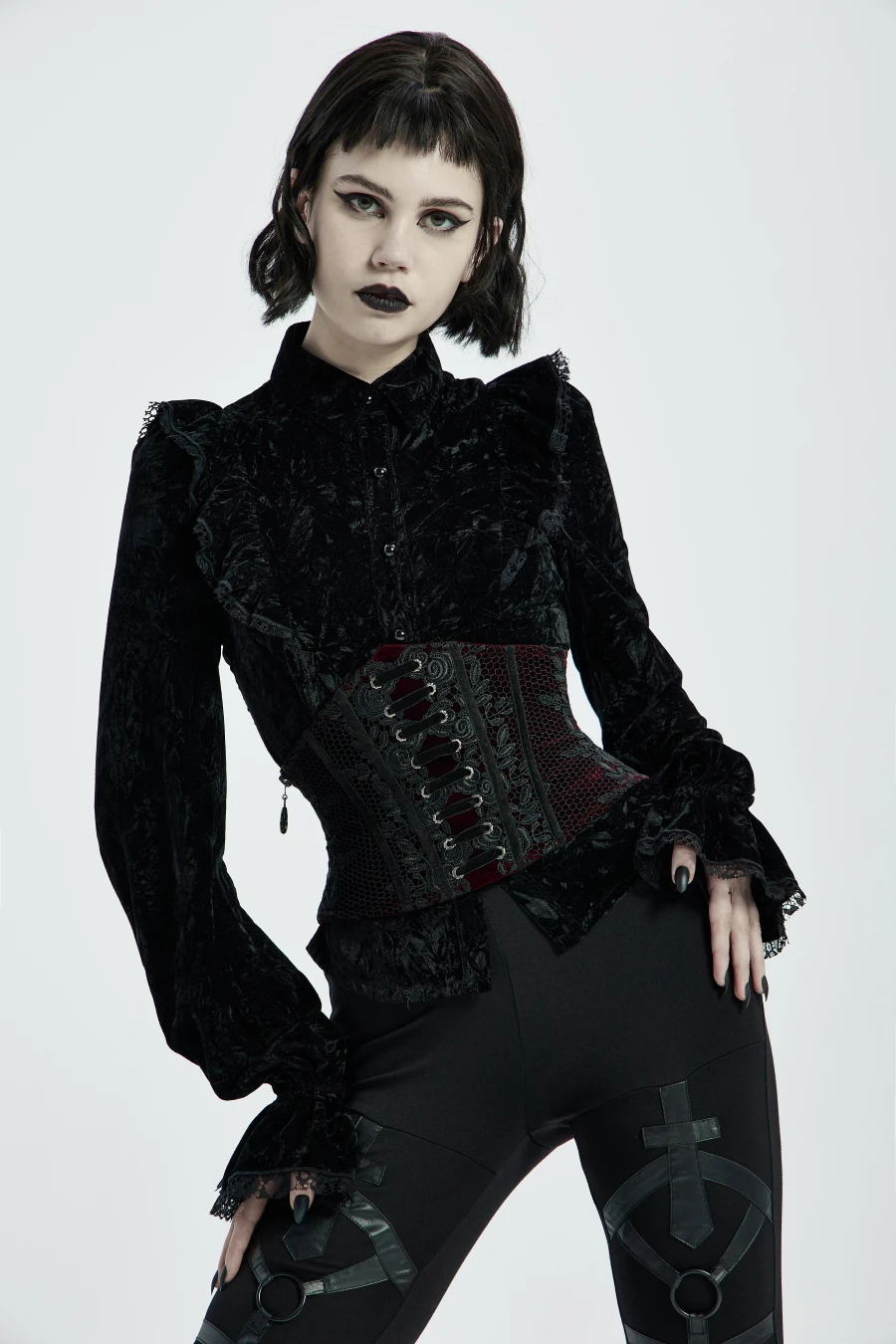 Superbe serre-taille en luxueux velours bordeaux par Punk Rave