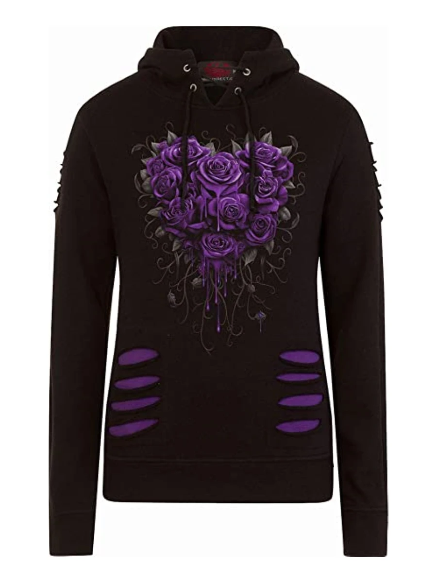 Le grand sweat à capuche déchiré violet-noir est fabriqué en 100 % coton de qualité supérieure, utilisant des colorants réactifs, sans azoïque et respectueux de la peau.