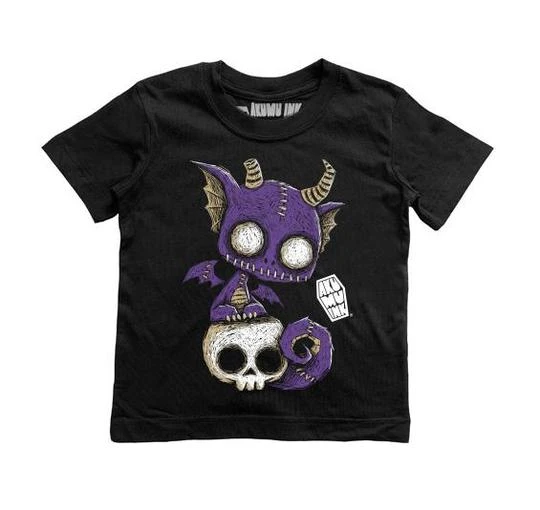 Ce petit dragon violet juché sur un crâne veillera sur vous