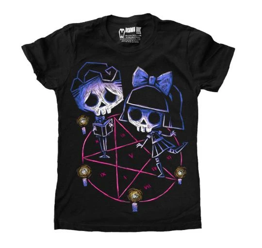 L’imprimé est terrible et porte bien son nom ‘le terrain de jeu du Diable’ avec deux squelettes dansant sur un pentagramme